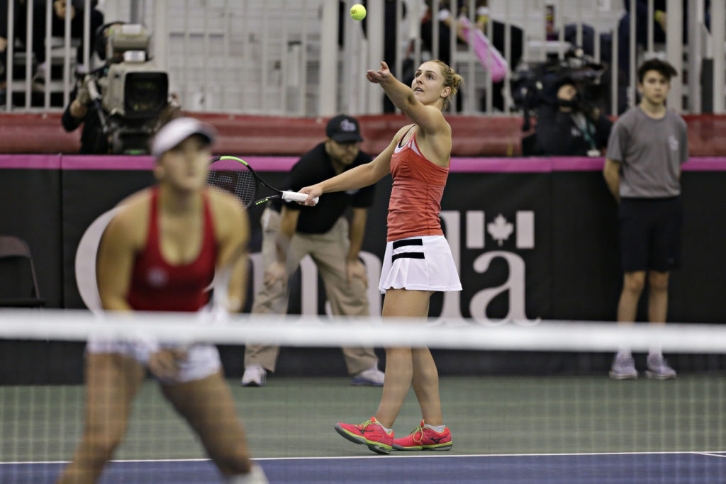 Une impressionnante victoire de 6-1 et 6-2 aux dépens des deuxièmes têtes de série Anna-Lena Gronefeld et Demi Schuurs en huitième de finale a été suivie d’un gain palpitant de 2-6, 7-5 et 11-9 face à Belinda Bencic et Alicja Rosolska. Seules les Allemandes Mona Barthel et Anna-Lena Friedsam ont réussi à stopper la Canadienne et la Lettonne, les battant 4-6, 6-2 et 11-9 au carré d’as.