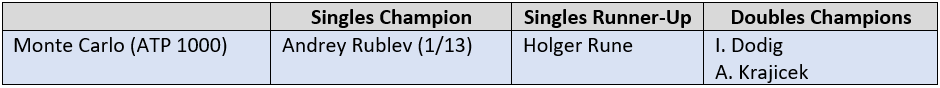 Over on the ATP Tour, the first major piece of hardware from the clay court swing ended up in the hands of Andrey Rublev as the 25-year-old won his first Masters 1000 title in Monte-Carlo, defeating Holger Rune in the final.