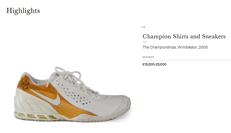 - Wimbledon 2005: shirt and shoes ($25 700 to $42 800)