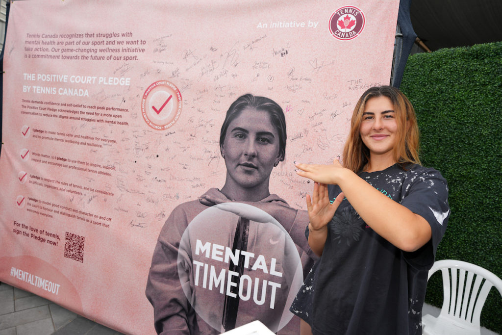Part of the groundbreaking initiative is The Positive Court Pledge by Tennis Canada which, “Acknowledges the need for a more open conversation to reduce the stigma around struggles with mental health.” Young tennis fans have also been encouraged to fill out affirmation cards for the players on site here at Sobeys Stadium with positive and supportive messages that Tennis Canada has been passing along.